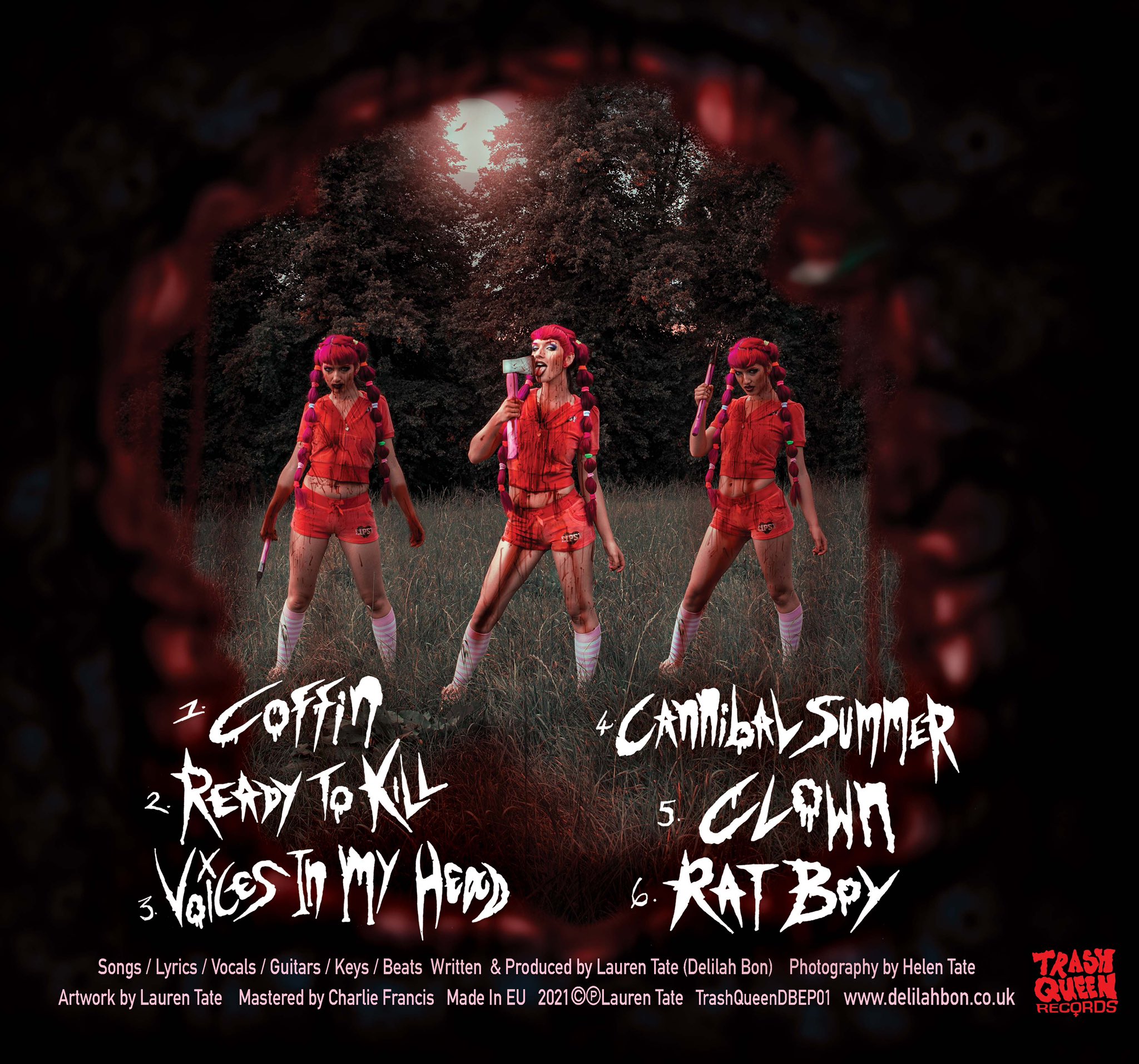 Lauren Tate is one of the most prolific artists around at the moment. Some excellent work with Hands Off Gretel, her classy solo work and more recently her bad ass bitch alter ego Delilah Bon. In my opinion the first Delilah Bon album is a contender for album of the year. So just when you thought Lauren might be taking a well earned rest she launches a horror themed Delilah Bon EP, ‘Ready To Kill’. Are you having a Halloween party this year? Then this EP has to be at the core of your party soundtrack. The sounds rage from classy rap, nu metal, punk and yes horror film theme vibes. Chain saws, coffins, killer clowns, cannibals, Dracula, what more do you need for Halloween? But this is no novelty horror cash in, there is not a duff track here. I hear there is a new ‘Scream’ movie coming, well producers please consider including a track or two from this EP on your soundtrack. The six tracks certainly evoke a spooky element perhaps no better than “Clown”, although “Cannibal Summer” runs it a close second. Even with the main horror theme Delilah manages to smash out at misogyny, particularly on the aforementioned “Cannibal Summer”. For me this EP and the superb album from May proves that Delilah Bon is most definitely here to stay. Remember when those snotty little kids come to you door on 31st October, blast them with the spine chilling, bone rattling, chainsaw massacring tunes from ‘Ready To Kill’, they will thank you for it, eventually. Can I make my suggestion once again for a range of Delilah Bon candies with sticky red fillings and called Delilah Bon Bons? Get your ears around these tunes ASAP, otherwise you will find zombies, ghosts, Vampires, Evil Clowns, Freddie Kreuger, Michael Myers and Jason Voorhees knocking on your door, because I will send them!