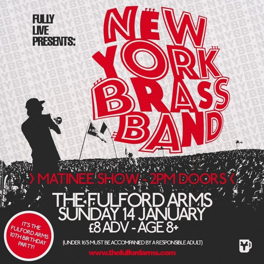 This was the first matinee gig I have been to in many years and the final gig celebrating the 10th birthday of the fabulous Fulford Arms. It was a two-set show from the magnificent New York Brass Band, a New Orleans-styled jazz-type band from York. But they are so much more than just a jazz or brass band. They are the ultimate party band that can raise a storm at festivals, parties, weddings, and intimate gigs like a matinee birthday party for the Fulford Arms. They are an 8-piece unit including four family members, and oh boy can this bunch play. They had the crowd on their feet from the first number and kept it that way the whole afternoon. I always think a band performs better when they are having fun themselves, and the New York Brass Band were having their own on-stage party. I loved some of the brassed-up Motown tracks they played, particularly “I Want You Back” and “Just My Imagination.” The female artist medley was ace and included some Spice Girls, B*Witched, S Club 7, and Weather Girls. I also feel that their version of Bruce Channel’s “Hey Baby” took ownership of the song back from DJ Ötzi who had a huge hit, a UK number one, in 2000 with an atrocious version of the track. The second set was even funkier with some excellent renditions of Earth, Wind, and Fire and Kool and the Gang tunes. At one point we even had a very polite York mosh circle/ conga going on which was huge fun! The cover of Marvin Gaye’s “Sexual Healing” was one of the highlights for me, in an afternoon full of them. To quote from that tune, “hot just like an oven” was exactly what the New York Brass Band made the Fulford Arms feel like on a cold Sunday afternoon in January! Bring on next year’s birthday, this one was fabulous! Well done to the Fulford Arms and all the fantastic staff and punters!