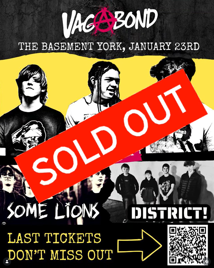 Those wonderful lads from Vagabond invited me to review their headline gig at the City Screen Basement and I was never going to turn down an offer like that was I? This would be the third time I will have seen Vagabond perform in just over a year. This was a sold out gig. Where they any good? Read on to find out dear reader, but first I need to tell you about the support bands. All three bands were so young that the venue had a dry bar, that was a new experience for me! First on stage were District! and incredibly this was their first ever gig. I sensed a degree of nervousness at the start, however they seemed to work through those nerves quite well and became more confident with each song.. Some of their original songs have a perky pop rock vibe and display a lot of promise for the future. Their choice of cover versions was inspired. Especially Radiohead (“No Surprises”) and the Arctic Monkeys (“When The Sun Goes Down”). A quick aside, how the actual fuck is that Arctic Monkeys song 20 years old?