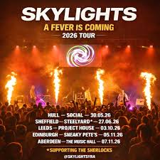 Skylights are back at last with a colossal thumping anthem of a tune, “Fever”. The opening guitar sound alludes to some of John Squire’s finest moments. Then the drums batter the door down and give the track an uncompromising dark Motown garage rock vibe. The vocals hit peak power, passion and emotion with hooks built to echo around arenas and festivals. The song perfectly showcases a band that are equipped and ready to elevate the mercury levels higher than ever before. This is rock music that grabs you by the balls and makes you listen. Skylights are not just back; they are back and ready to get bigger and better!