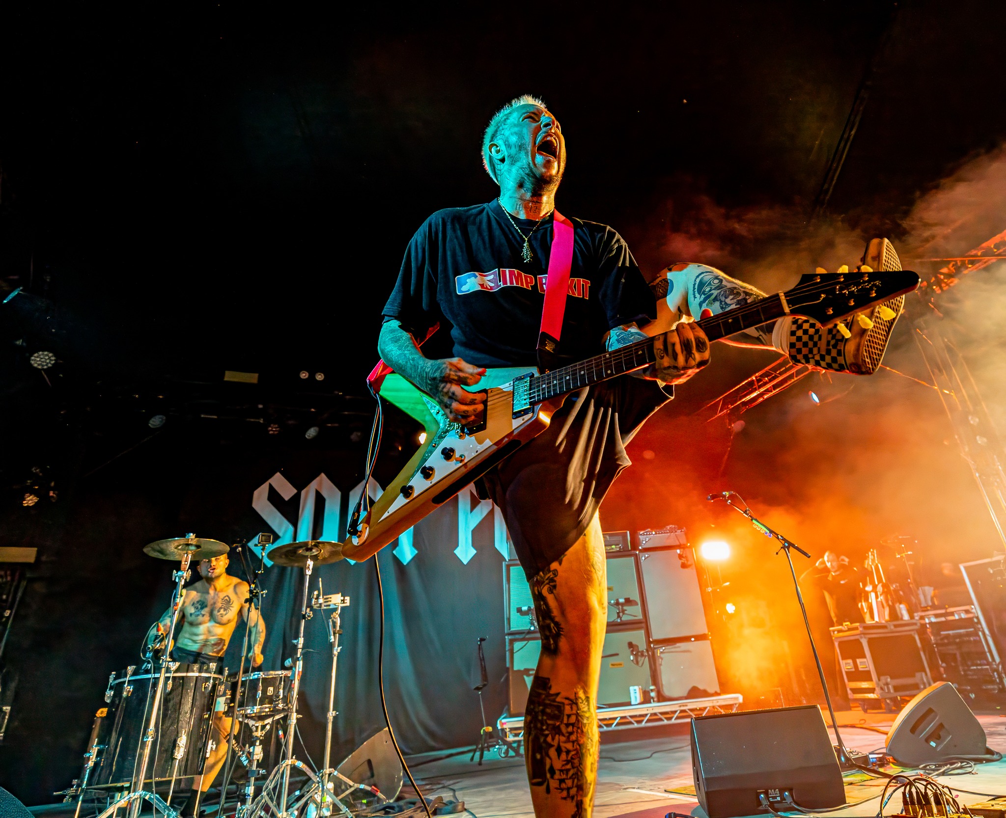 KennyHoopla rocked the Festival Republic Stage to its foundations, well at least to its deep-rooted tent ropes. This was easily one of the best sets of the weekend for me an undoubtedly the most energetic. Hoopla ran, leapt, spun, and jumped around the stage like the Duracell Bunny powered by a nuclear reactor. He climbed high up one of the girder-like tent supports at one point and overcame some radio mic issues by prowling around the stage like Iggy Pop on speed-infused Viagra. His band is incredible, especially the guitarist. The highlight, and there were many to choose from in his 9-song set was the electrifying performance of his 2020 US hit “How Will I Rest in Peace if I’m Buried by a Highway?”. This guy is something special.