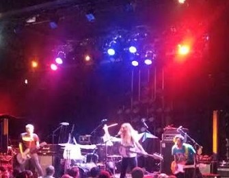 I am proud to announce that ‘With Just A Hint Of Mayhem’ has gone international, well the following is a review of a rather outstanding gig I attended while on a business trip to the Big Apple. Which makes it the first non UK gig reviewed on this site. I am also really delighted that it features the barnstorming Pumarosa, one of the finest British bands around. But before I get to them let me tell you about the support band Homebody from Greenfield, Massachusetts. Ethereal and otherworldly singer Haley Morgan may have been created by someone splicing DNA from Bjork and Patti Smith with a sprinkle of Toyah Wilcox. At times she comes across like Kate Bush on speed, but in a very good way. Haley’s outfit was very ‘out there’ and appeared to have been created from net curtain or wedding veil material. The soundscape is provided by Eric Hnatow and it evokes the very early releases of the Human League. Eric maintains a stoic and serious face rocking like a bald Ron Mael off of Sparks. They have some first-rate tunes and frankly how could you not love a song such as “Tits To The Sky”?