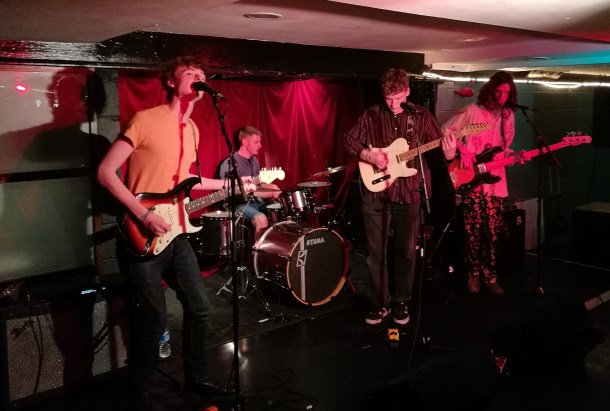 This night would mark my second opportunity to see the rather brilliant Skylights from York and also serve to remind me of just how old I am. Why the latter? Well I realised that the first time that I ever saw Tom Hingley was at the Reading Festival in 1990 when he was the lead singer of the Inspiral Carpets. They headlined that year and no doubt I also caught a glimpse, without knowing, of their guitar tech; a young Noel Gallagher. That is nearly 30 years ago! Anyway enough of all that reminiscing how about I tell you about this gig at the Crescent? Well first l I should apologise for missing the Feds who were first on the bill. The ticket said 8 p.m. and I got there just before that only to find that the Feds had hit the stage at 7:15. Oh well I will need to catch them another time. The second band on were Apollo Junction from Leeds and they are purveyors of fine, quality pop rock. The audience was not a bad size at this point but everyone was congregated around the two raised spaces leaving the main floor empty. However this did not deter Apollo Junction who had already suffered one setback as their keyboard player, Sam was too unwell to join them. Not only were they not deterred they were positively inspired with three of the band; Jamie, Matt and Ben coming on to the floor to continue their set. Drummer Jonathan was left on his tod on the stage. This is a band with a hell of a future. They are Gareth Bale’s favourite band don’t you know!
