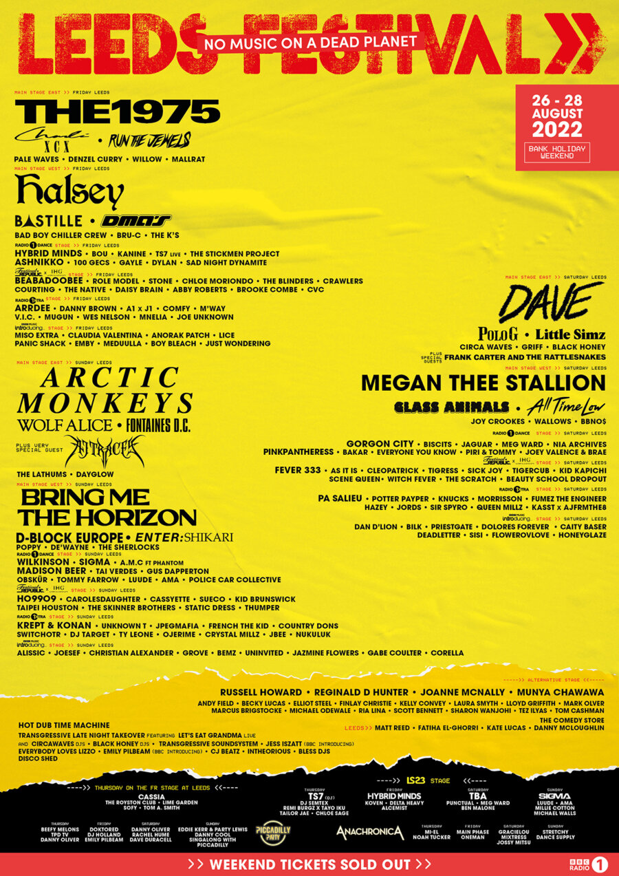Day 2 of the Leeds Festival 2022 kicked off for me with Frank Carter and the Rattlesnakes on Main Stage East. Frank and the Rattlesnakes are possibly the best live band in the country, and probably beyond, right now. Frank Carter clearly loves what he does and cares passionately about his fans and the wider festival crowd. The female mosh circles he got going were incredibly popular. But the highlight was Frank and Deano hoisted high in two separate circle pits while they carried on playing and singing. That takes balls and skill and this band has an abundance of both. I doubt that there is a more perfect band to kick off a day at this festival. Next, it was over to the Festival Republic Stage for Beauty School Drop Out. These manic LA glam metal punksters smashed it with a storming energetic set. I love this band that occasionally reminded me of Don Broco. I stayed at the Festival Republic Stage for the Scratch. This was fucked up folk music for all of us fucked up folks. This band is like an Irish Gorgol Bordello but on Lemmy levels of speed. The Scratch are definitely one of the best bands I have ever seen at a festival and also one of the oddest. There was even traditional Irish dancing going on in the mosh circle too. This was refreshingly different and bloody magnificent. I made my first visit to the BBC Introducing Stage on Saturday to see Sisi. Some of today’s R & B can be derivative and bland, but that is not Sisi. She is an ace performer and her voice has a majesty that only some of the greatest soul singers can match. Imagine the voice of Whitney Houston (in her less shouty moments) spliced with Millie Jackson’s immense soulful voice, that will give you some measure as to how good Sisi is. Witch Fever drew me back to the Festival Republic Stage. They are like a Bikini Kill for this generation. But they are even more magnificent, even more metal, and this last one might be hard to believe, but even more militant. This band wears their hearts and their beliefs on their sleeves. People should be more Witch Fever.