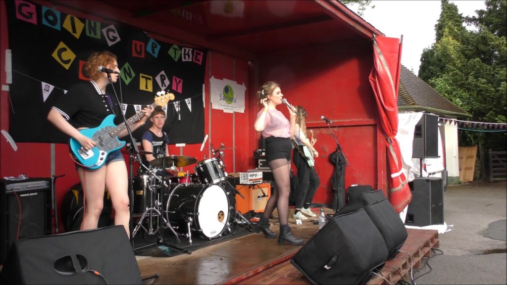 First up it was 4 Pint Milk in the Rick Witter tent. They are from Huntington School and seemed all of 16 (apologies if you’re older than that lads!). But they rock like they’re much older. The part of their set that John and I saw was cover versions, but damned good cover versions. Jake Bugg’s “Green Man”, the Smiths’ “This Charming Man”, Stone Roses “I Am The Resurrection” and my particular favourite, “Brianstorm” originally done by the Arctic Monkeys. I hope these boys succeed, they play really well and they have an excellent dour and dry northern wit.