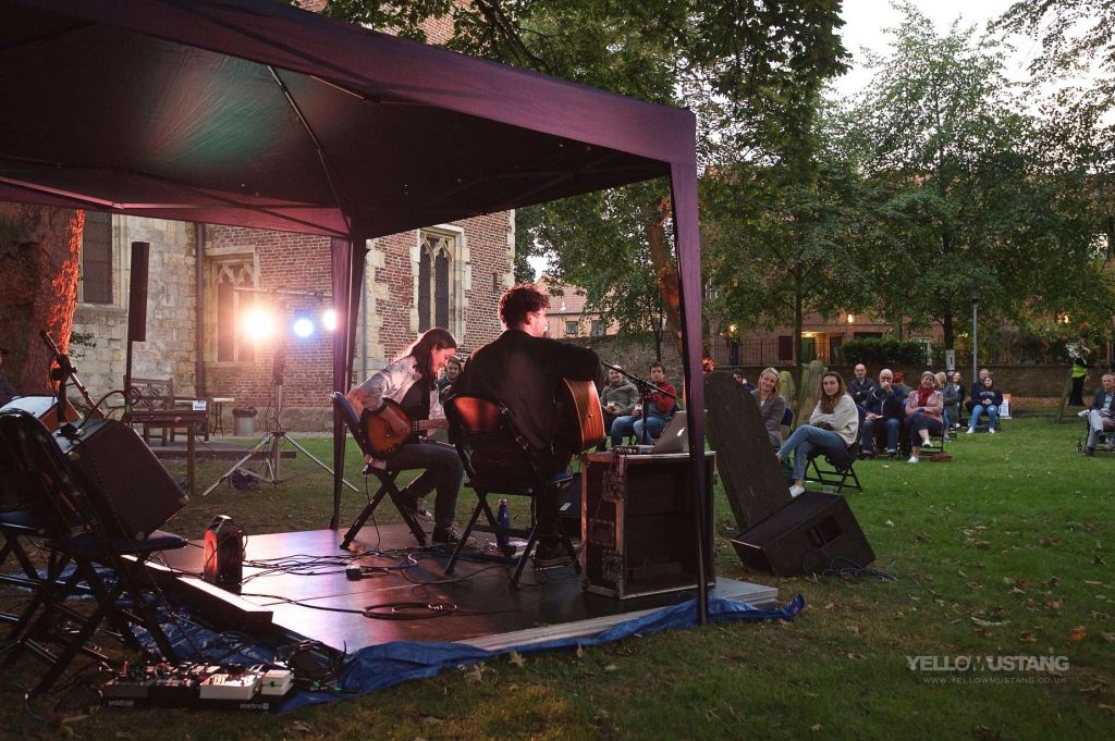 Thanks to this vile bastard Covid-19 I went to my last gig more than half a year ago on Saturday 14th March, now 187 days later I am finally got to another gig. It is the sixth and final in the Songs Under Skies series of acoustic shows in the grounds of York’s National Centre for Early Music (NCEM). I had planned to attend two earlier shows the previous week, but illness, not Covid-19 thankfully, put paid to that. These shows were masterminded by the NCEM, the Crescent and the Fulford Arms with support from the Music Venues Alliance. I would like to say a huge and heartfelt thank you to everyone involved, of all the things I have missed during lock down and beyond, it is live music that I felt the most. It was also great to meet up with so many great people from York’s fabulous music scene. Thank you Zac, Chris, Harkirit, Mikey and Marc to name just a few!