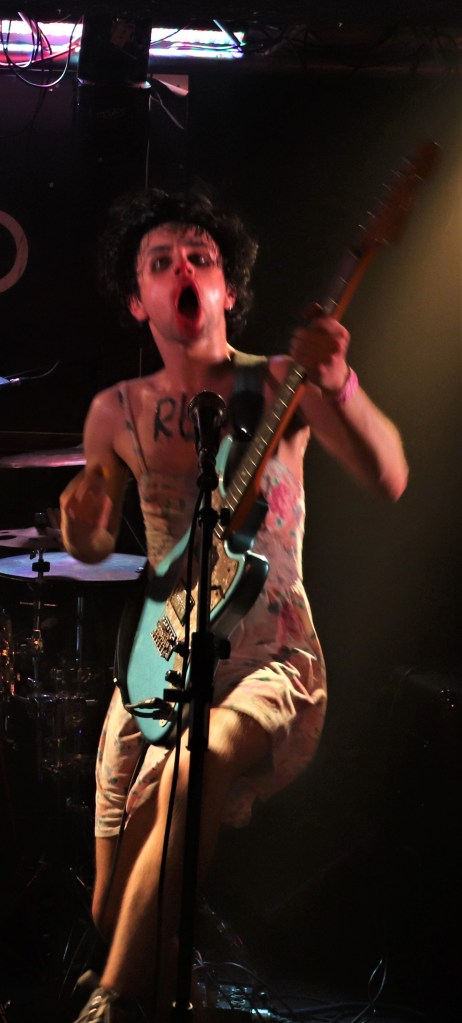 Last Friday I had the honour and the pleasure of being at the fabulous York venue the Crescent for a headline gig by one of the best bands in Britain right now, the Blinders. But before I tell you about them let me spend a little time on the rather spiffing support bands. First up was York band Faux Pas. This lot are an absolute riot of energy, a bouquet of passion and posy of punk. They rip into your very being and leave you wanting more. Singer guitarist Ru Cowl wears a very big heart on his sleeve and has more balls than many singers by wearing a summer dress and the hand written ‘RUNT’ across his chest and laying down a passionate challenge to gender stereotypes. Their new single “Shame” was released last week and while it sounds good in its recorded form it becomes a towering behemoth of a song when played live.