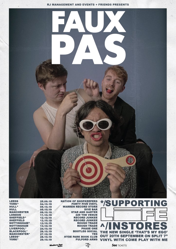 This would be the third time that I have seen those magnificent punky noiseniks, Faux Pas. The first time was last November when they supported the Blinders at the Crescent in York and the last time was at the Fulford Arms in York as one of their TV Made Me Paranoid Tour shows. Both of those gigs allowed Faux Pas to showcase just how loud, proud and talented they really are. So obviously I was expecting a lot of them at the Vinyl Cafe last Friday, especially as it is a very small, intimate venue for which the volume would need to be turned down a notch. My expectations were exceeded as Ru, Lewis, and Joey proved that they can perform in any environment and that their songs work in quieter as well us loud mode. It wasn’t a full-on acoustic set with Ru adding some decent guitar to some songs and Joey keeping the beat with softer sticks throughout, giving a rich jazzy feel at times. But they were never too far from their indie-punk signature sound, especially with new single “That’s My Ego” where Ru’s vocals might well have melted some of the vinyl albums on display. On “Golden” Joey proved that he is more than just a damned good drummer with some skillful tinkling of the ivories. Perhaps the stand out for me though was Lewis’ guitar work he weaved his punk-jazz licks around every song and added layers to them that takes them to a different level completely. His axemanship was as good as a young Johnny Marr or Steve Mason for Gene in their mid 90s peak. Faux Pas wear their punk hearts on their sleeve, they could be this generation’s Placebo and they are on the same groundbreaking pedestal as contemporaries Queen Zee (who sadly announced their break up while I was writing this review). But wherever their influences may come from they are most definitely original and there is only one Faux Pas! Everything that I have seen and heard from Faux Pas makes me believe that beyond a shadow of doubt they have what it takes to go all the way and I hope they make it! If you haven’t caught them yet on their autumn tour either in support of LIFE or in-store shows promoting “That’s My Ego” there are plenty of opportunities left, go on you know you want to, actually scrub that, you know you NEED to see them!