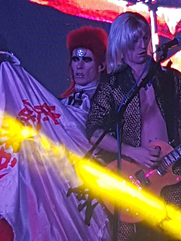 Regular readers will know that as a die-hard, life long David Bowie fan it took ages for me to finally cave in and see a Bowie tribute act. That particular tribute act is Absolute Bowie and 2019 marks the third year in a row that I have seen the magnificent spectacle of an Absolute Bowie show. When I first came to see them at Fibbers back in 2017 I was determined not to like them, but I bloody loved them and still do. The show is empathetic, sympathetic and a stunningly well put together tribute to the late, great Dame David. This show was very special as it featured not just the usual two Bowie’s from my experiences, but no less than four different Bowie incarnations. Obviously Ziggy and the Spiders was first, kicking off proceedings with an explosive “Watch That Man” followed by many Ziggy period classics including another from ‘Aladdin Sane’ that I hadn’t heard for a while, “Panic In Detroit”. There were many highlights in that first set particularly the perfect rendition of “Aladdin Sane (1913-1938-197?)” including the warped jazz tinged Mike Garson piano licks from the supremely talented Alex Paolillo. When Bowie (John O’Neill) picked up the 12 string guitar I knew a treat was in store and I was not wrong, first a great version of my favourite Bowie song “All The Young Dudes” and then a crowd pleasing take of “Starman” which had the crowd singing at full volume.