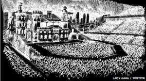 The Gaga set seems to feature a large castle with plenty of walkways into the audience. She also describes an area surrounded by those walkways as the monster pit. This is where her most ardent followers, those she calls her little monsters will want to head for. Particularly as some of those will be specially selected by Haus of Gaga to come backstage later to meet HRH Gaga in person. But the monster pit will only be for those fans who have ‘arrived first, waited all night, + dressed to ‘ball”.