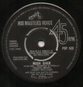 It is Danny Williams‘ version of the timeless classic “Moon River”. The song was originally written for the film ‘Breakfast At Tiffanys’ released earlier that year. The song was performed by Audrey Hepburn, playing the role of Holly Golightly in the movie. Danny was South African and to many people his version remains the definitive one, although many have recorded it since. In fact it became somewhat of a theme song for Andy Williams who sang it on many of his TV shows. Which is your favourite version? Mine is the 70s reggae version from Greyhound which you will find at the end of this post.