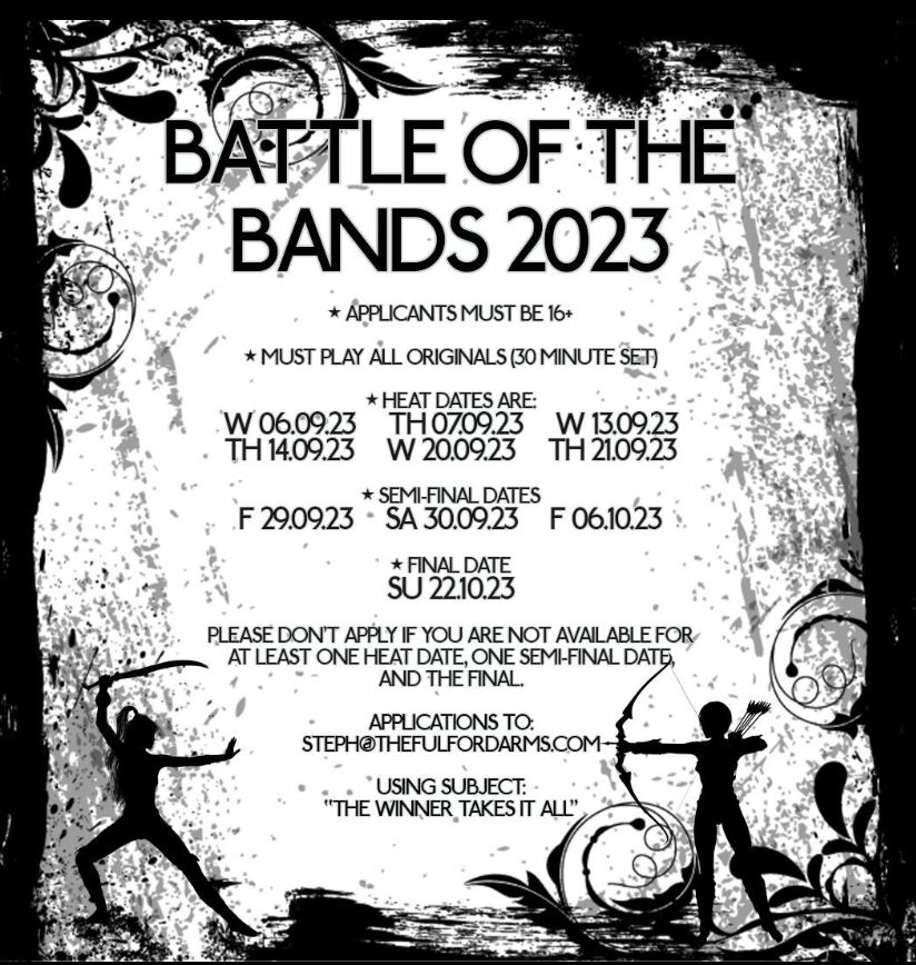 Huge congratulations to the Palava who won on December 2nd last year. There is a video from each of the four heat winners below, including the Palava. Unfortunately, I could not locate a video from I Tell Lies, so click here to check them out on Spotify! The event was so successful that the Fulford Arms Battle Of The Bands for 2023 is even bigger. There will be six heats (the first is on 6th September), three semi-finals, and then the Grand Final on 22nd October. The poster above provides all the dates and details of how to enter. Who is up for it? I will be judging 9 of the 10 shows this time around. It would be great to see your band there, you know what to do! As a brief footnote, I enjoyed the event so much that I was a judge at a Battle Of The Bands contest at a local school, which also happens to be where I work now too!