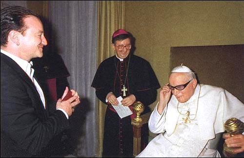 Pope steals Bono’s glasses in effort to look cool…….. FAILS!