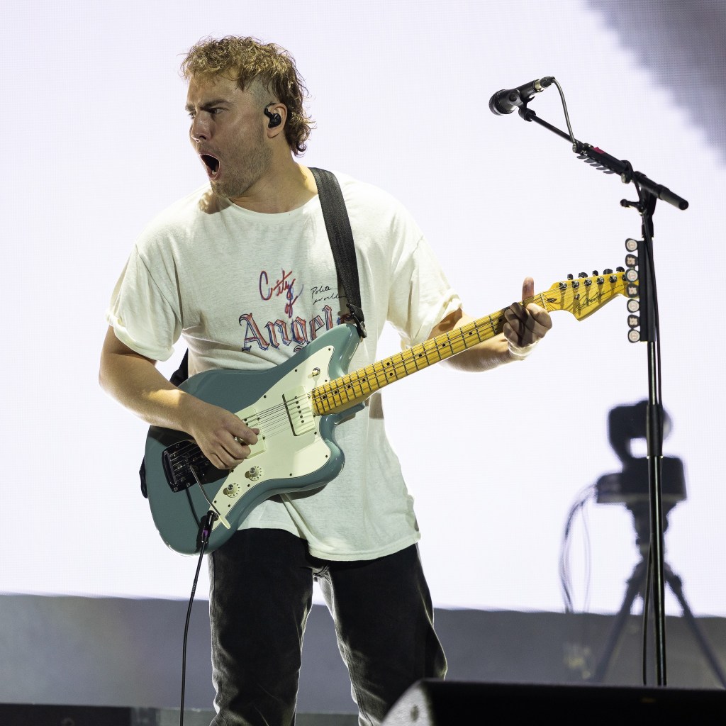 Holly Humberstone played a beautiful set on the Main Stage East in advance of her new album ‘Paint My Bedroom Black’ which is due out in October. She managed to hold off the rain and “Superbloodmoon” had us all bouncing around! Easy Life were on the Main Stage West and played some blissful summery pop and funked-up disco with some jazz tones. Some elements of Bruno Mars and Bran Van 3000. They took a risk singing a song about rain, but they pulled it off and it stayed dry for their set. Next, it was a quick run over to the Festival Republic Stage for Scouse punks High Vis. This was full-on hardcore punk with passion, power, anger, and energy in abundance. Great message songs in their set as well.