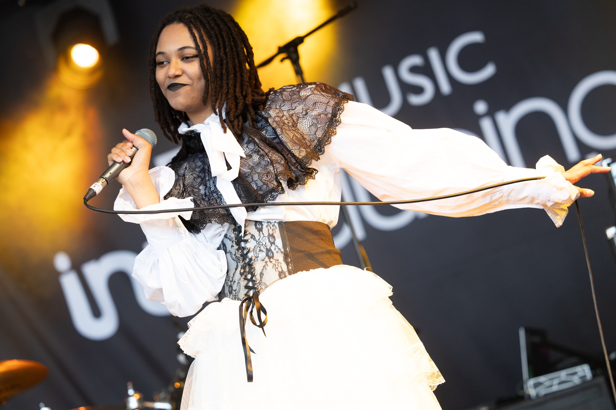 Next, it was Hot Milk on Main Stage West. They have an underlying pop-punk sound with some incredible metal injections and old-school punk. The crowd was properly up for this and would have moshed until the sun went down. To be fair many of them probably will! Next, it was the Snuts on the same stage they are purveyors of pop-infused, anthemic, indie rock songs that are perfect for a sunny festival afternoon. A quick dash to the Festival Republic Stage to catch the Royston Club. A bit like Pulp spliced with the Housemartins with an injection of heavier sounds. Some great hooks and yet more sounds for summer. My first visit to the BBC Introducing Stage allowed me to catch TWST, clearly someone who embraces the strange, but in a very good way. She is a great performer with a touch of Barbie, Madam Misfit, Gwen Stefani, and a Disney Princess with attitude. She has a gorgeous voice that works on proto-power ballads and some awesome dance bangers.