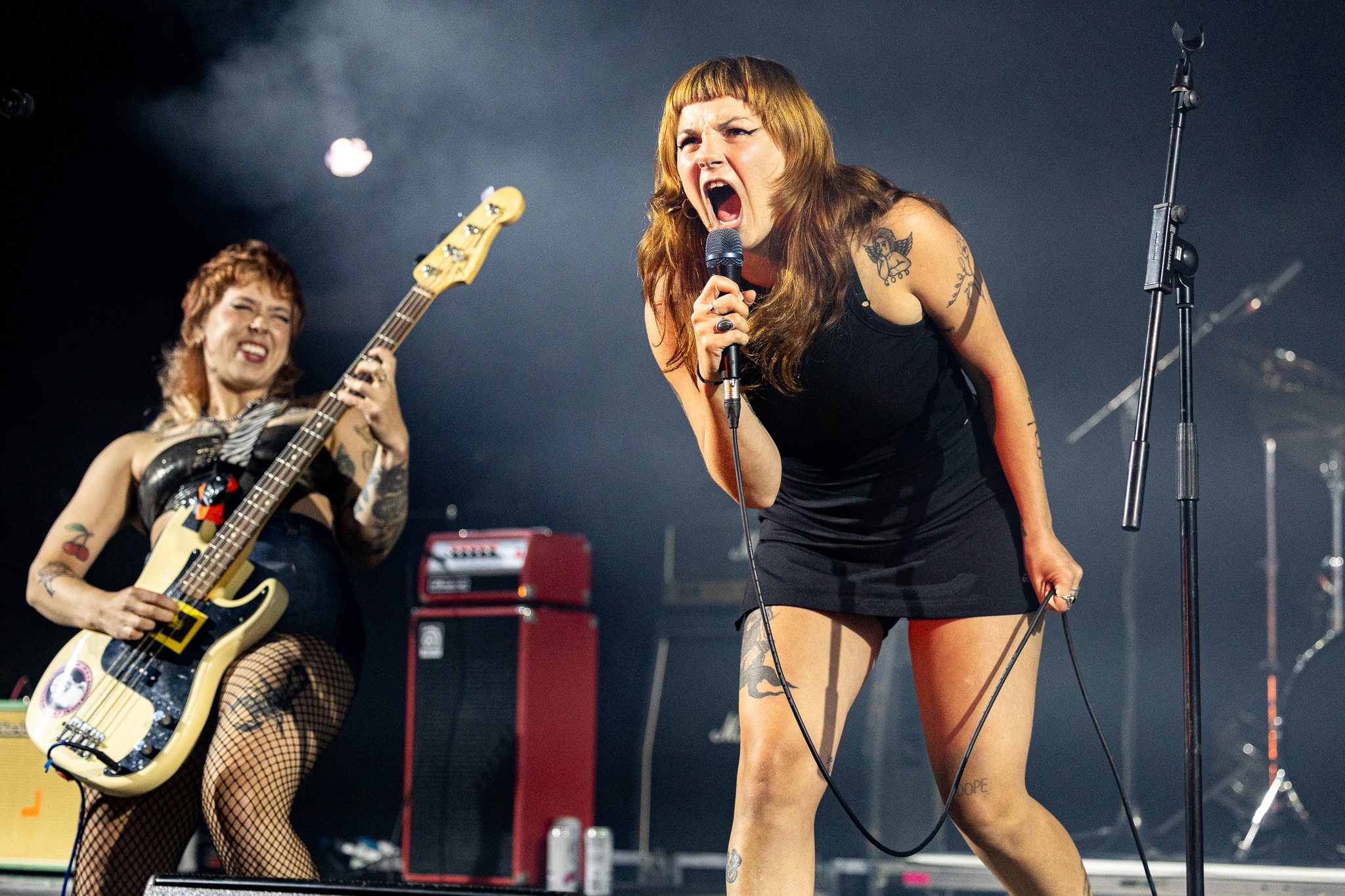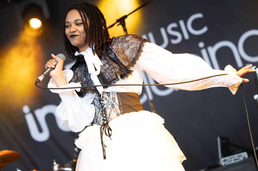 Lucia and the Best Boys were next on the BBC Introducing Stage. They are from Glasgow and are like an alt.Texas. Lucia has a voice every bit as good as Sharleen Spiteri and she put on a striking performance. Their first album is out in September. keep an eye out for it. Pixey, a.k.a Elizabeth Sinead Hillesdon from Ormskirk, was the headline act on the BBC Introducing Stage Sunday night. Her sound feels like a slick 21st Century Motown crossed with the fun and the impeccable pop displayed in Junior Senior’s “Move Your Feet” from 2002. Slaves changed their name back in 2022 and are now known as Soft Play. In contrast to their new name, they played it as hard as hell on the Festival Republic Stage bringing a colossal cacophony of loud, mountainous modern metal.