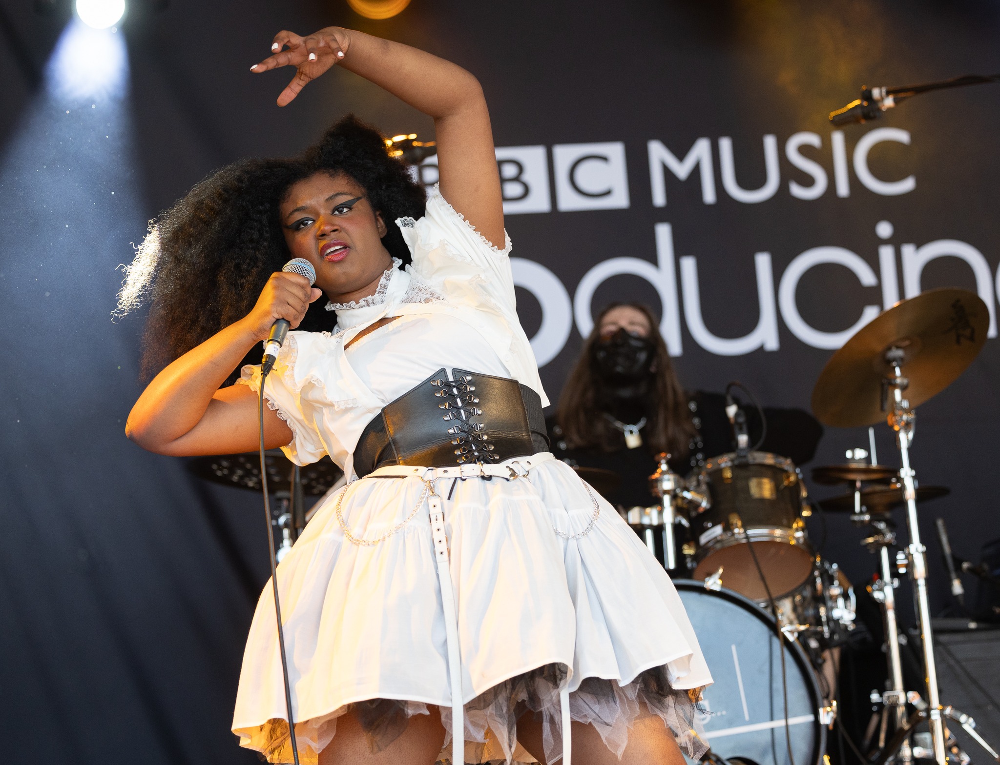 I made another visit to the BBC Introducing Stage, this time for Grandma’s House. This trio is punk with a hard-hitting, well-played sound with what feels like a DIY ethos. I felt some echoes of early White Stripes and oodles of riot grrrl vibes. A short hop across to the Radio Xtra Stage for Lost Girl, she was damned good. Tons of sublime dance and R&B sounds and some boundlessly, energetic, and stylish dancing from two stupendous and perfectly syncopated dancers. There were some fine beats from the DJ, which included some magical African-style percussion. Lost Girl was signed to a label when she was 17, she is now 23 and has not been able or allowed to release any music. So, she has left and is now independent. I am looking forward to new stuff from her.