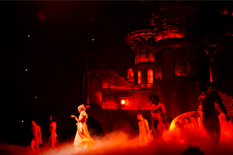 After Justin and the boys left the stage we were promised a 30 minute wait for HRH Gaga, this stretched to about an hour which is never a good thing is it? Gaga’s entrance though did tick all the right dramatic and spectacular boxes. The curtains dropped to reveal a stage set that was part Disney princess castle and part Hammer Horror film left over. She then made her way onto the stage on the back of what can only be described as a very posh pantomime horse. For most of the gig the band were hidden away in the castle; shades of Bowie’s theatrical excursion across the USA in 1974 for the Diamond Dogs tour.