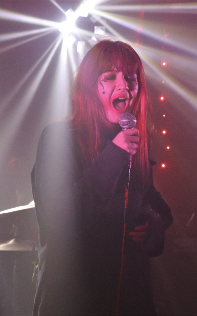 Until now I had missed every opportunity to catch Hands Off Gretel play live, so I had high expectations of this show. Did the band meet my expectations? You’ll have to read on to find out as there were also three other bands on the bill, starting with Witch Of The East. This is the brainchild and solo project of the mightily talented Aeris Houlihan, her sound is heavier than heavy, as grungey as it can get and definitely turned up to 11. Aeris has a blonde version of Marc Bolan’s iconic early 70s hairstyle which allows me to blatantly paraphrase Mr. Bolan and say of Aeris, “She ain’t no square with her corkscrew hair”. Her guitar playing is exquisite and her vocals are really special. Her singing voice is great on the new album ‘Queen Of Insecurity’ but live it goes beyond great. On stage, Aeris was aided and abetted by a drummer that could fit with Motorhead or the Muppets, he was that good! I am not yet familiar with all of Witch Of The East‘s songs, but Aeris gave me a copy of the album so it won’t be long! (Thank you Aeris!). I believe the opening song was “Silence” and my favourite from the set was “When You Fuck Me” which for me was how I would imagine Peaches sounding if she was more metal than electro. Ms. Houlihan made a really stylish and effective crowd incursion towards the end of her set too. I am now a confirmed fan of Witch Of The East and I can hardly wait to see them live again!