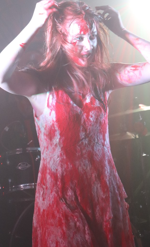 My current favorite track from the EP is “God” and live it is an epic masterpiece. The crowd was up for this band in a big way. Chloe made a number of excursions into the audience and the crowd went into manic mosh mode towards the end. My Wonderful Daze lived up to a previous description from me “Imagine what band might arise if Florence and the Machine had been kidnapped by DC’s Suicide Squad and the Joker injected them with a mix of a large dose of heavy metal and Kurt Cobain’s DNA.” But they went even further than that tonight. In the week that ‘IT – Chapter Two” hit the cinemas there were plenty of Pennywise style red balloons with added black balloons to add a streak of goth. The second half of their set saw much fake blood, well at least I hope it was fake! This was streaked across the faces of the band and Chloe sporting red hair rocked a perfect Carrie White post-Prom Queen scene in a blood dripped white dress. This was not just a gig it was a show with some really theatrical moments, not many bands can pull that off, but My Wonderful Daze can do it with style and ease. There was a technical guitar hitch near the end, but a mighty and dynamic jam session from Mr. Jack Sparkle on bass and JoshQ6 on drums and Chloe taking it upon herself to dance with members of the audience entertained us impeccably while the guitar issue was resolved. For me, the mark of a great band or at least one with the potential to become great is how they handle a mishap like that. My Wonderful Daze handled it like seasoned veterans. They finished with a rip-roaring cover of Dolly Parton’s “Jolene” closer to the White Stripes arrangement but with the heavy and dark turned up to full! You really need to see this band, but while you are waiting check out the “Guilty Party” EP by clicking here