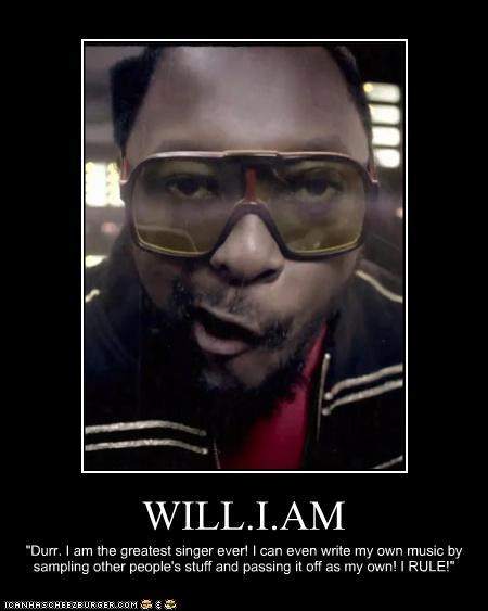 I have often felt that will.i.am was a bit.of.a.cock and his current legal spat with Pharrell Williams proves that point for me. The dispute centres around the use of the phrase I AM by Pharrell, willy.i.am says tha infringes his use of the phrase. But surely he uses i.am?