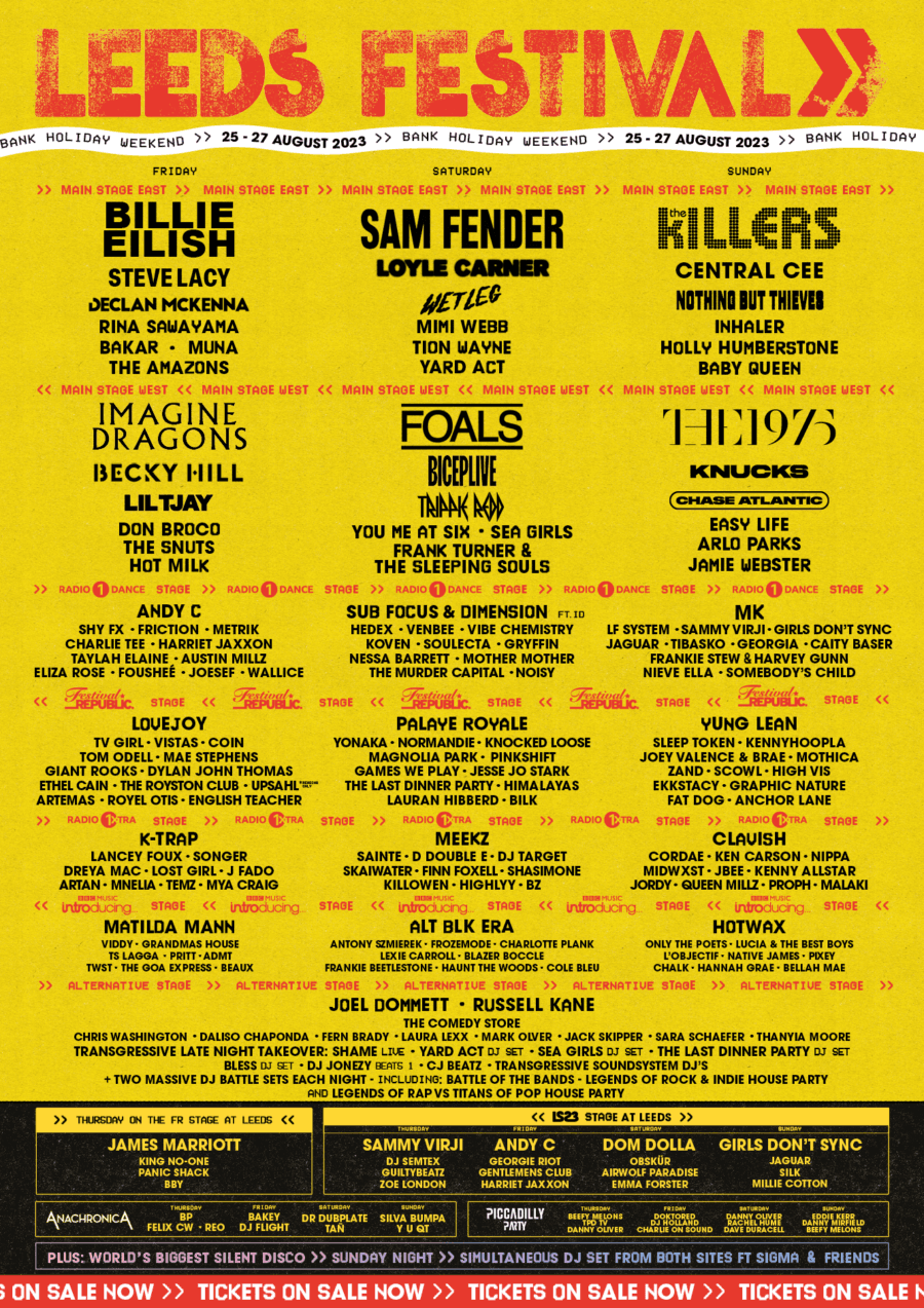 I just managed to catch the last three songs from on the Main Stage East from Steve Lacy. He first came to prominence as the guitarist in the alternative R&B band The Internet from 2015. He is a talented guitarist and vocalist and somewhat Princelike in his style and performance. He closed with “Bad Habit” which was a US number and a UK top 10 hit last year. I am so glad I got to catch even a small part of his set. Imagine Dragons were on the Main Stage West next as one of the joint headliners. Personally, I think whoever closes the night is the real headliner. But to be fair to them they played like headliners. “Thunder” and “Follow You” were highlights for me. Finally, it was time for Billie Eilish, and it felt like everyone on site had converged on Main Stage East for her performance. Like many headliners, she has had her own stage constructed, a huge ramp. She put on a fabulous performance and as expected the crowd loved her. She was like a feminist alt.Barbie with a hugely colourful outfit.