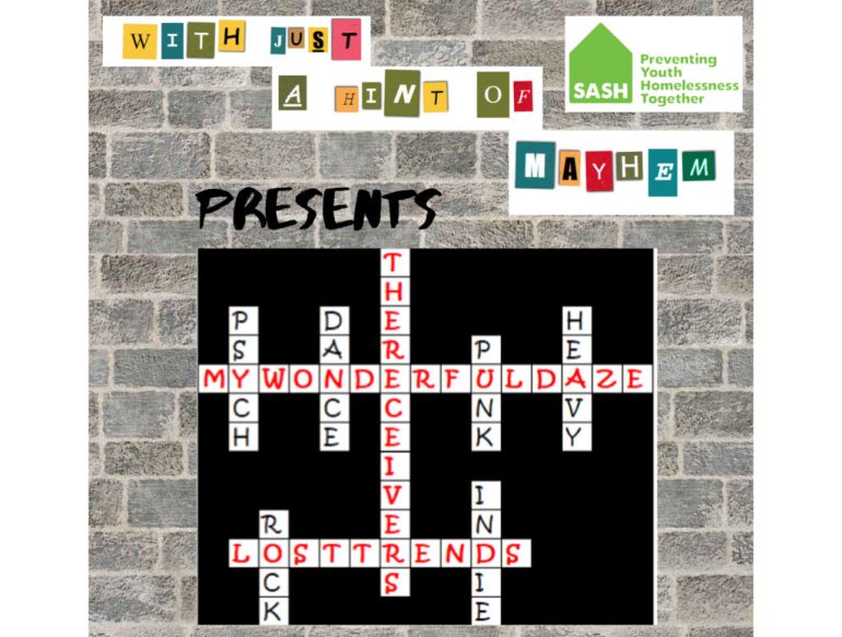 Before the bands came on Matt Messias told the crowd about all the great work that SASH do to help prevent youth homelessness. Every band played like they were headliners which made it a blistering night of fabulous music. The Receivers played crowdpleasers like “Saturday” and showcased a couple of new songs. Guitarist Alex had some instrument issues towards the end of their set but improvised with some maniacal Bez dancing. Flowers a.k.a. Chloe the obscenely talented frontwoman of My Wonderful Daze had an awful cold but did not let that deter her or the band from pulling off an incendiary set. The crowd had been up for a party and were wearing their bopping shoes and dancing trousers and showing their best moves all night. That culminated in the whole room grooving to those famous indie dance punkateers Lost Trends. It was a great night of punk, funk, psych, indie, metal, glam, and ROCK. It was LOUD and I loved it. Everyone that I spoke to loved it too. All three bands looked to be having great fun on stage as well. The Receivers and My Wonderful Daze offered much of their merch sales to SASH. I know that Lost Trends would have done the same but they are currently “the band with no merch”! So thanks to all the paying punters (many of whom gave their change to the charity), merch sales, all the bands turning down a rider and a discount on the venue hire fee we raised more than £400 for SASH. That is beyond my wildest expectations and it will fund 21 safe nights sleep to young people facing homelessness in our community. I cannot thank you all enough for what you helped us achieve. With Just A Hint Of Mayhem will definitely be doing more gigs!