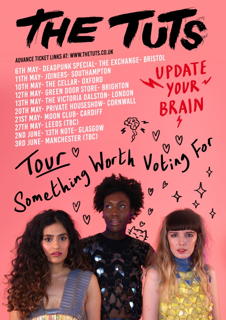 Many of you reading this review will be among the many pledgers who will already have the album. But don’t worry if you’re not, you can still get your hands on it. I don’t usually give stars or marks out of ten for albums on this blog. But I will make an exception for the Tuts with an 8 and a half out of ten. Why not ten? Well first I never give a ten and secondly I expect their next album to be even better so I want to leave room for a higher mark! We should also start a campaign to have the Tuts appear at Reading and Leeds Festivals next year. It will be a big start in breaking the male domination of the bill. Now stop reading this shit and get listening to ‘Update Your Brain’……… NOW!!!!