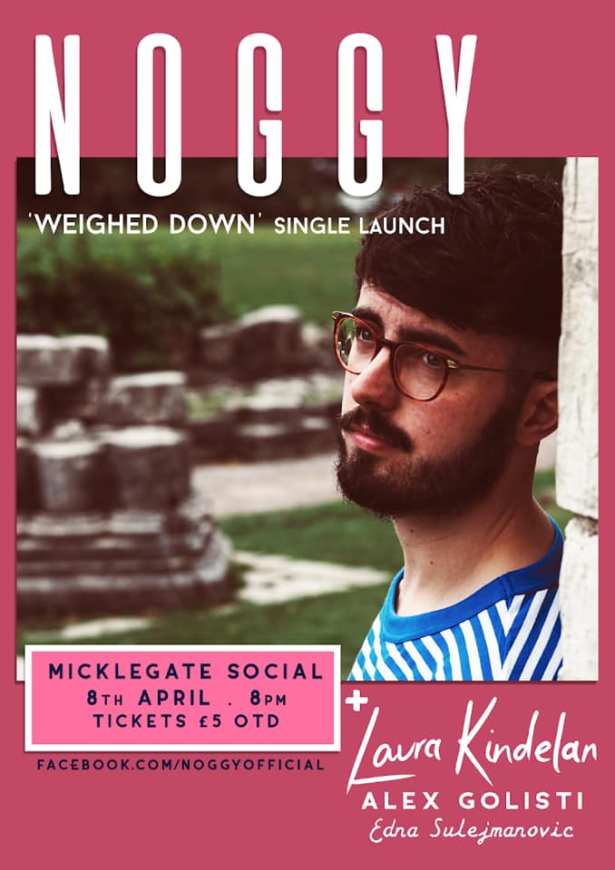 Until this show I never realised that the Micklegate Social was a gig venue. I remember the basement there being a rather musty extra seating area for the upstairs bar/ coffee bar. But now it seems transformed into a fabulous, intimate small venue that is perfect for showcasing local upcoming talent. Tonight was the launch of “Weighed Down” a new single from York singer songwriter Noggy. But before his set we were entertained by three more mightily talented artists. The first of those was Rosalind, who replaced Edna Sulemanjovic who unfortunately couldn’t be here. She played some perfectly chilled ballads that made me recall New York’s Janis Ian around the time of “At Seventeen” which was a massive US hit in 1975. Rosalind’s songs and her singing showcase some immense emotional depth. She also played a stunning take on a Benjamin Francis Leftwich song. I definitely want to hear more from her and if you read on you may well see her mentioned again in this post.
