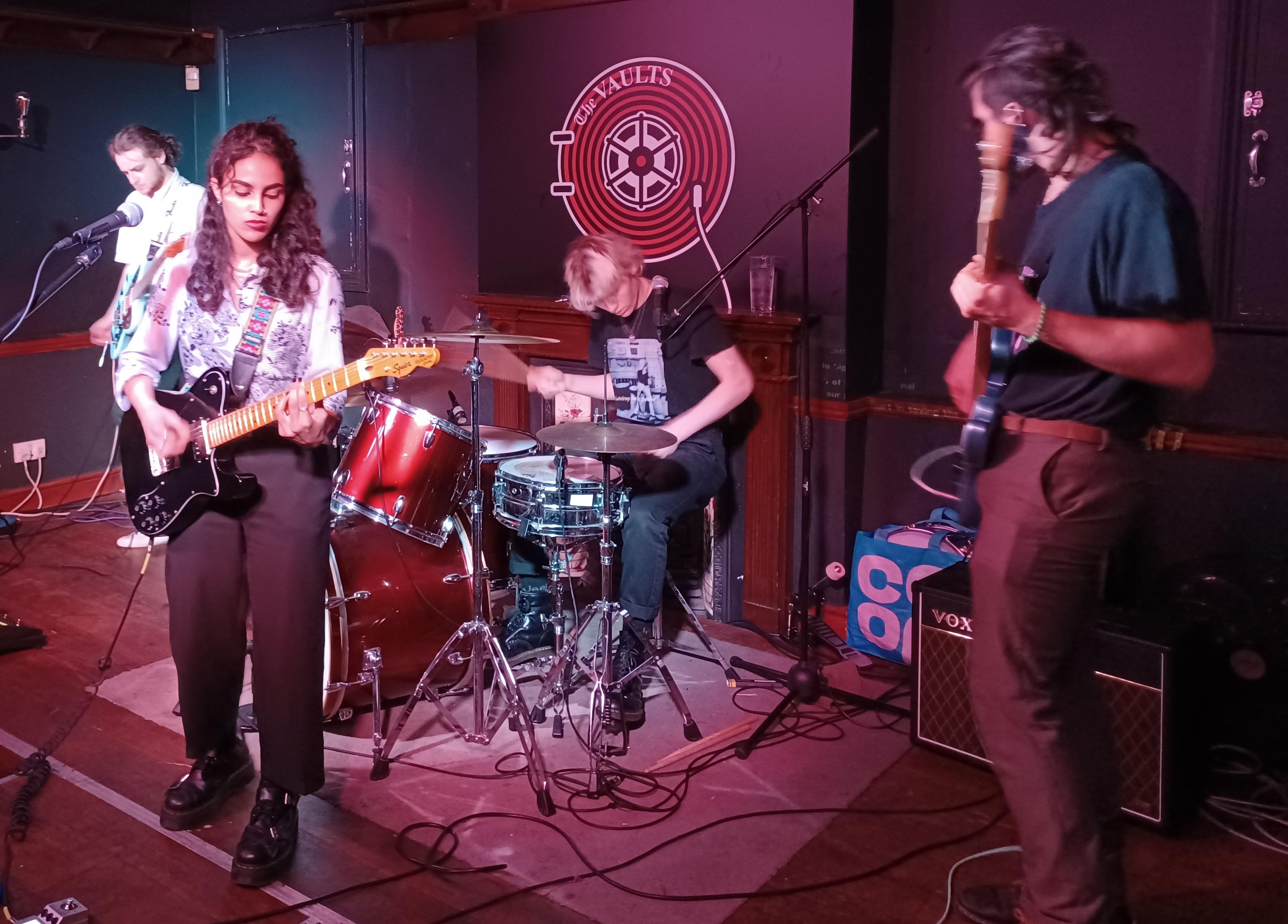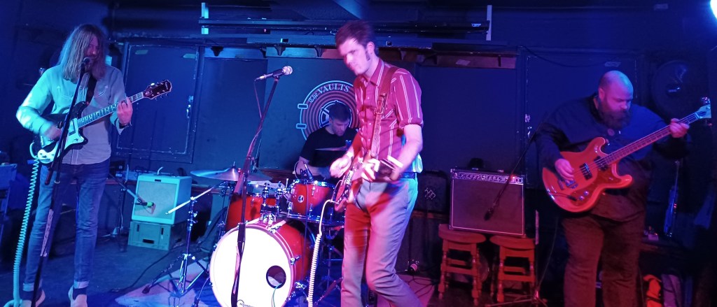 Finally, it was time for this Winter Solstice Spectacular to kick into overdrive as Spirit Of The Hawk took the stage. Once again including members of Percy and Soma Crew. This was a supreme sonic fest that showcased just how good Hawkwind once were. This was a true psychedelic trip with some heavy, jazzy, proggy sounds, and, as with the Summer Solstice Shenanigans we had our very own Stacia stand-in making some flowing dance shapes in a glittery jumpsuit. This lady knows how to interpret music with dance. Every member of the band was firing on all cylinders. The guitar playing was exceptionally good. If you had shut your eyes during the set you might have imagined that it was Dave Brock on stage. There were too many highlights to mention but I loved “Damnation Alley” and set closer to “Quark, Strangeness And Charm”. When I reviewed the show in June I mentioned a quote from New Order’s Stephen Morris, “Punk rock started because in every small town, there was somebody who liked Hawkwind.” I am already looking forward to the next Spirit Of The Hawk gig, are you?